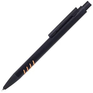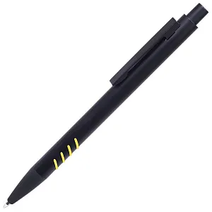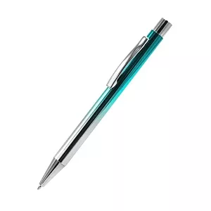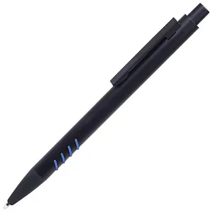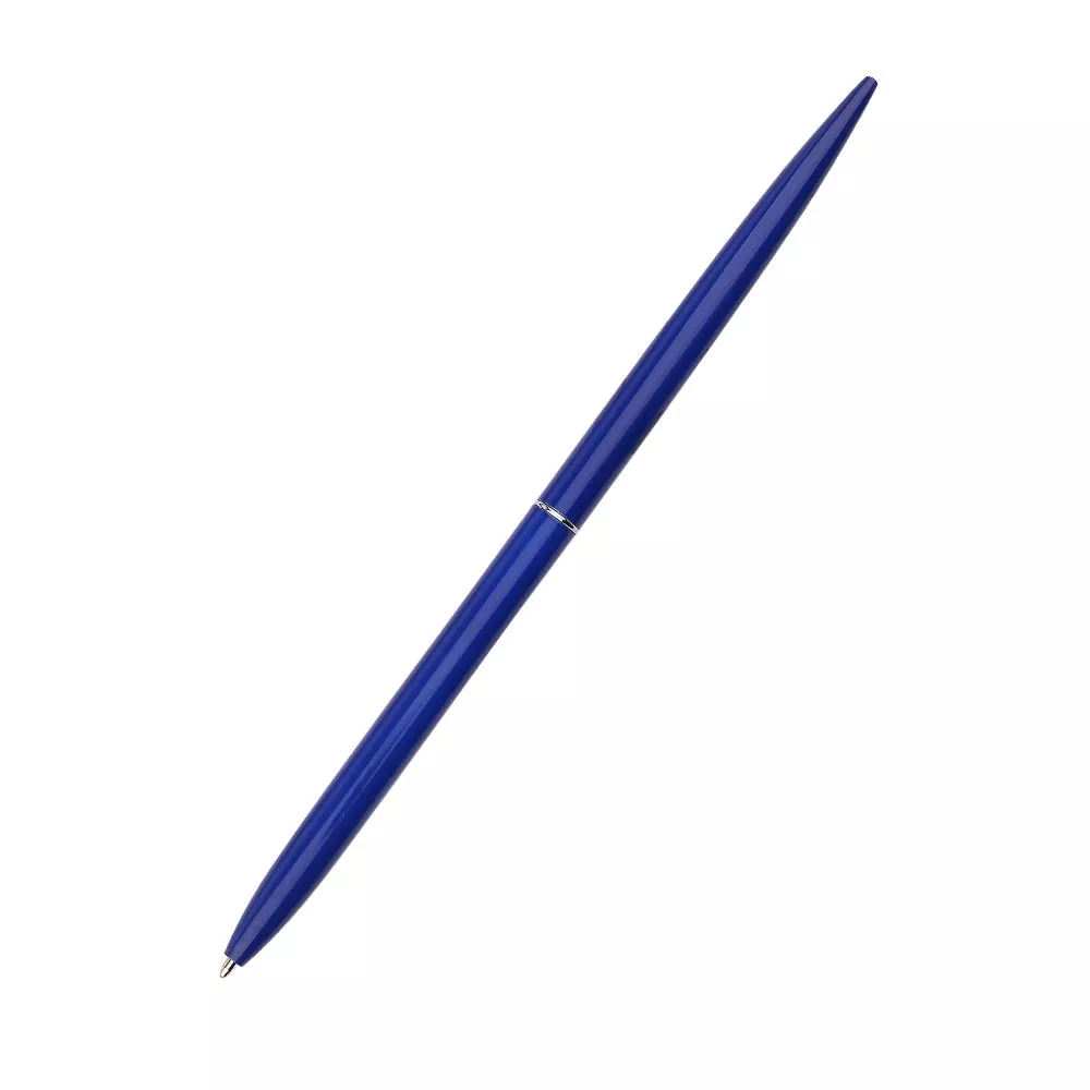 Синие чернила, материал – металл. Нанесение логотипа осуществляется методом гравировки или УФ-печати. Толщина пишущего узла 1 мм, длина письма рассчитана на 700 м.