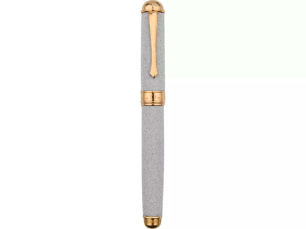 Корпус этой оригинальной перьевой ручки покрыт крошечными металлическими шариками. Множество миниатюрных сфер не только являются метафорой мироздания, но и создают удивительные тактильные ощущения, когда держишь эту ручку в руке. Человек, которому подарят такую ручку, не захочет с ней расставаться.