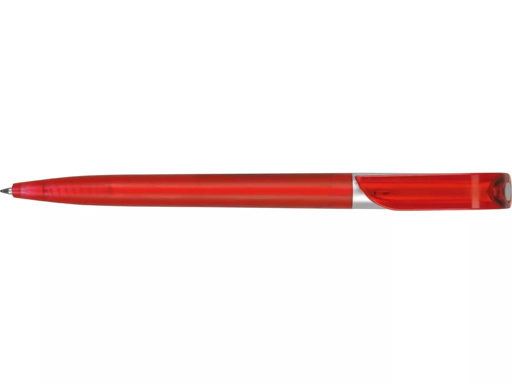 Оригинальная шариковая ручка с поворотным механизмом. Прекрасно подойдет в качестве промо-сувенира на презентации. Широкий клип оригинальной формы. На клип и корпус возможно нанесение логотипа вашей компании.