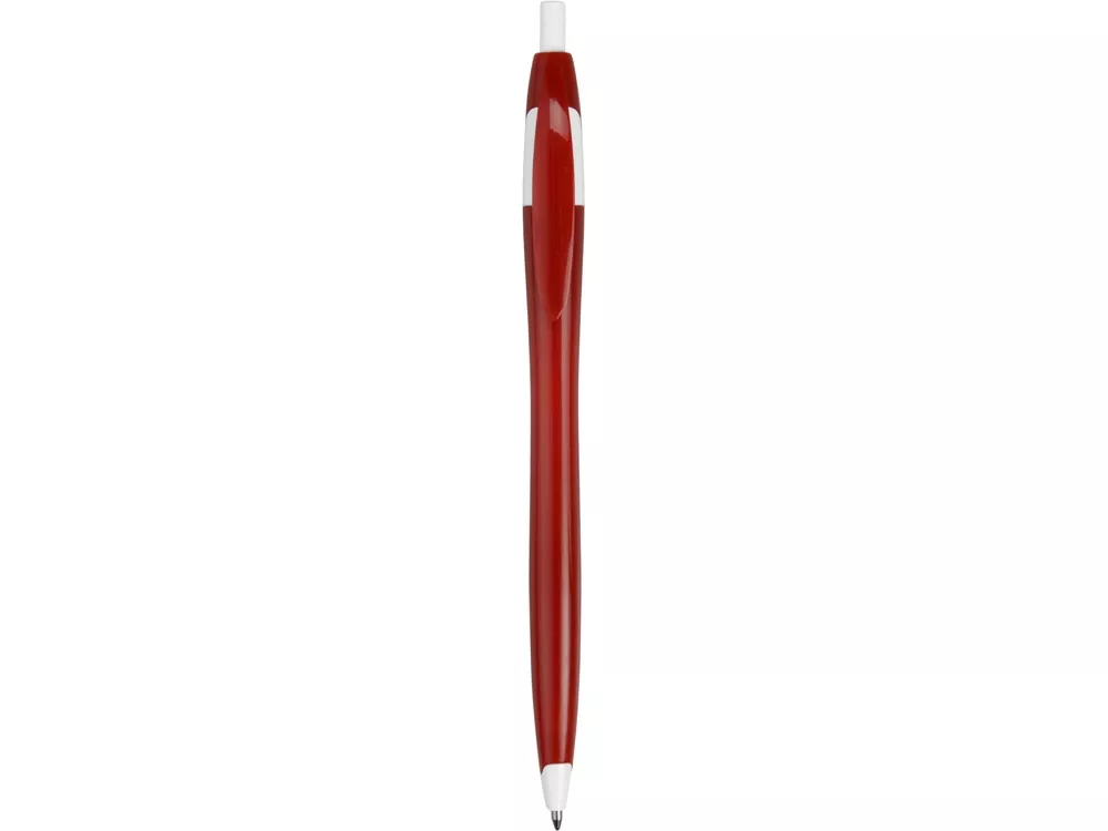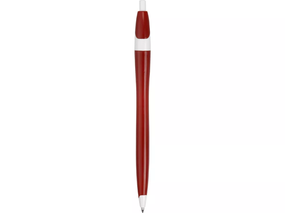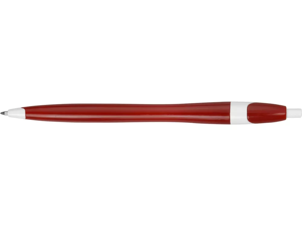 Простая, но стильная пластиковая ручка с цветным корпусом и белыми вставками на носике, кнопке и под клипом. Белые вставки делают ручку более заметной, не отвлекая от рекламной информации на ее корпусе.