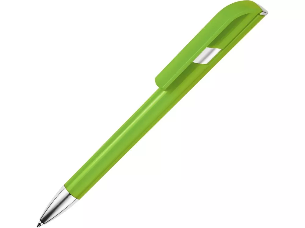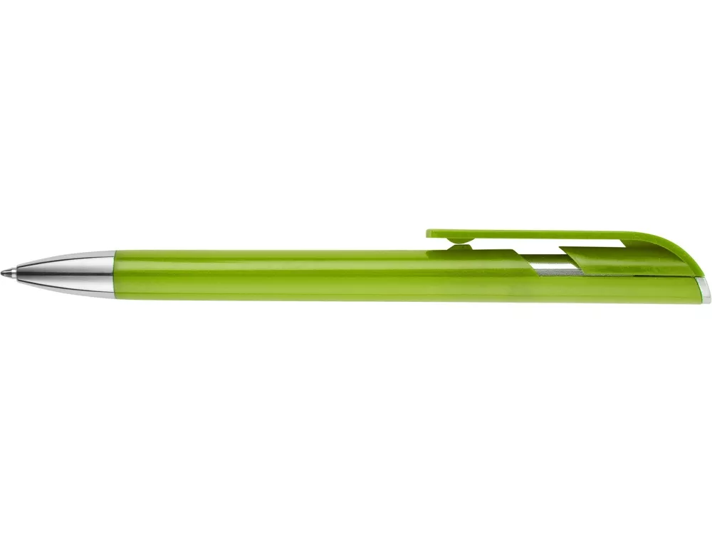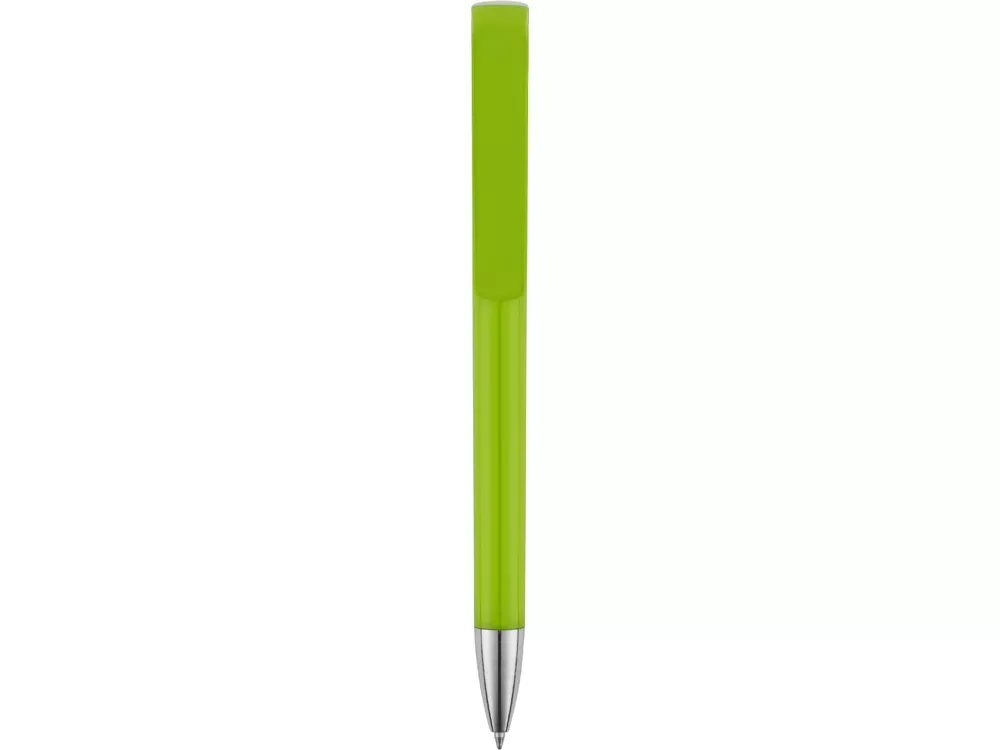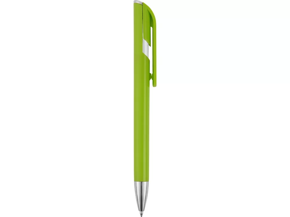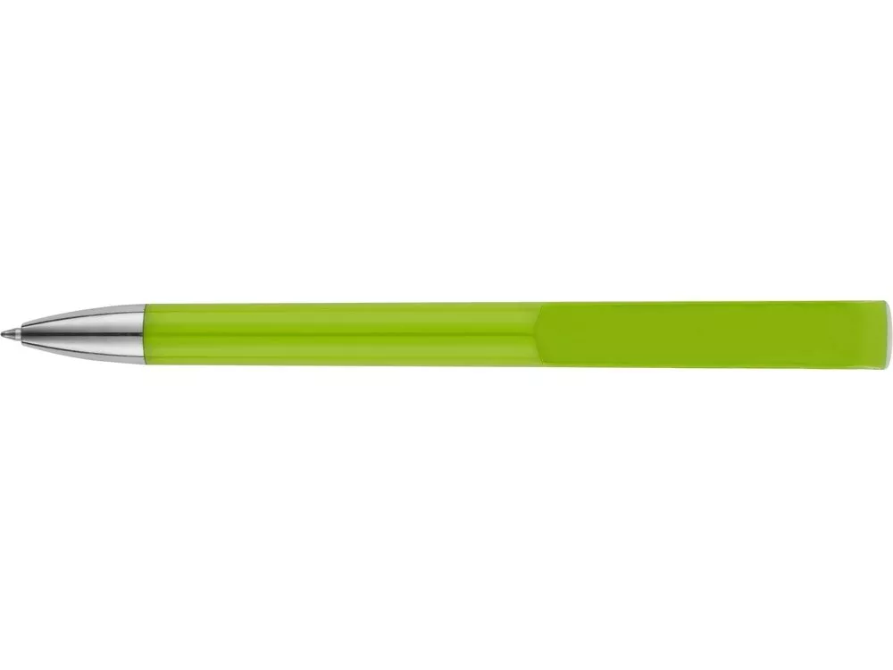 Пластиковая ручка с цветным корпусом и серебристым носиком привлечет внимание своим необычным дизайном: при нажатии на кнопку двигается только часть клипа, а вторая – остается на месте. Из шести расцветок можно выбрать ту, что наилучшим образом подойдет к вашим фирменным цветам.
