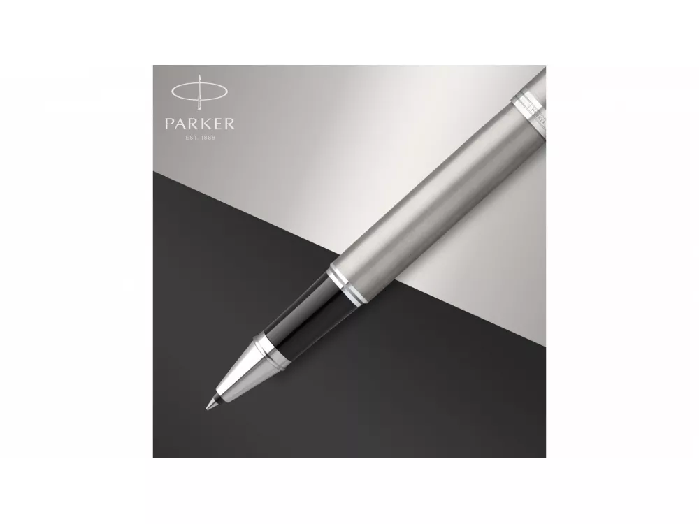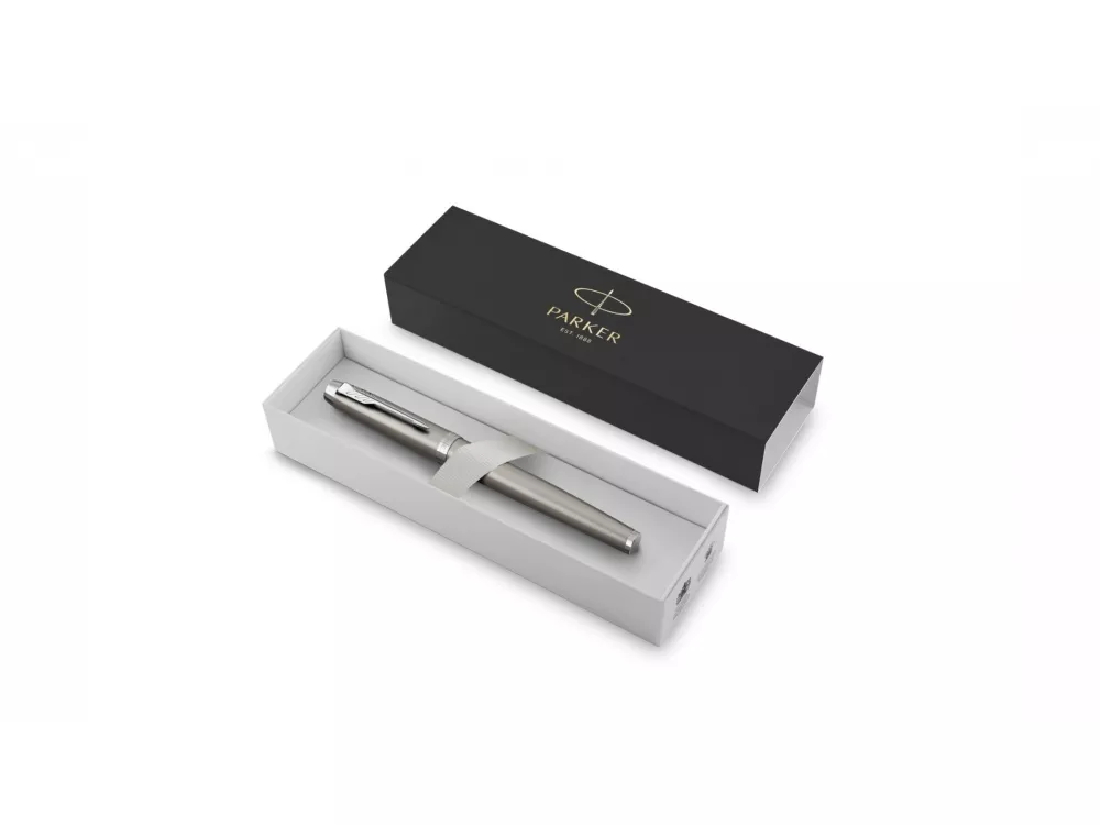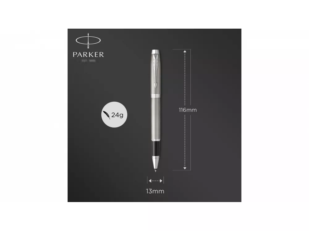 В новой коллекции Parker IM проявляется весь опыт Parker по созданию баланса формы и функциональности. Каждая деталь от стилизованной стрелки до стальной секции захвата, тщательно изучается, при этом лишние детали отбрасываются в пользу повышения комфорта, практичности и лаконичности стиля. Сочетая дизайн и стоимость по принципу ничего лишнего с непреходящим стремлением к обеспечению качества Parker, эта ручка стала идеальным пишущим инструментом для жизни в движении. Система заправки: заменяемые стандартные стержни для ручек роллеров Parker. Корпус: ювелирная латунь. Отделка: высококачественный серебристый лак, отдельные детали дизайна - зеркальный хром. Цвет: серебристый.
