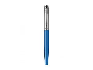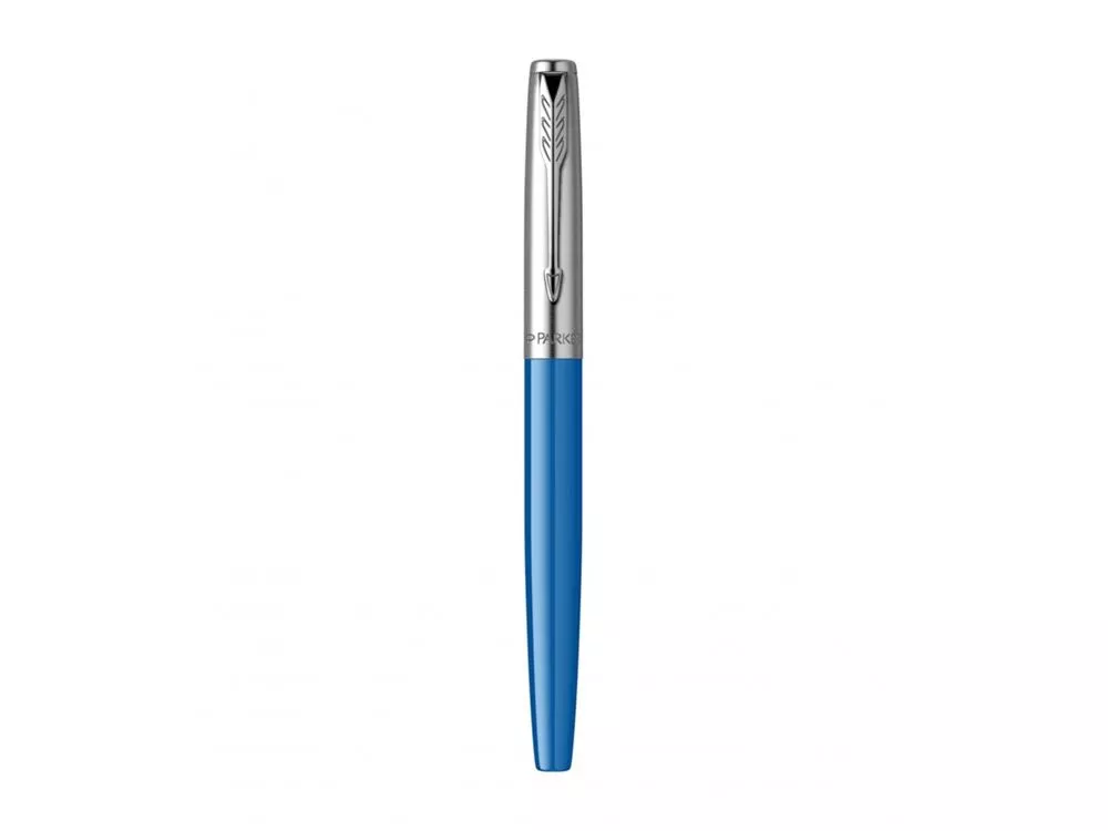 Ручка-роллер Parker из коллекции Jotter Originals выполнена из нержавеющей стали, а также пластика. Декоративные элементы отделаны хромом. Ручка упакована в оригинальную картонную подарочную коробку Parker. В комплекте идет стержень роллер черного цвета, он находится под платформой с ручкой.