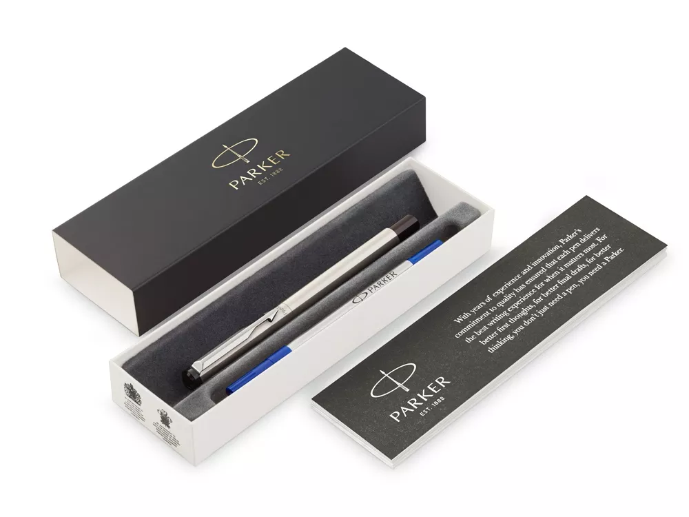 Коллекция Vector – это стильная, простая в использовании, надежная ручка на каждый день. Корпус ручки-роллера выполнен из полированной нержавеющей стали. Колпачок украшает знаменитый клип в форме стрелы Parker. Цилиндрическая форма и вес корпуса обеспечивают идеальный баланс в руке при письме. А технология Rollerball FreeInk гарантирует качественное и гладкое письмо при каждом использовании.
