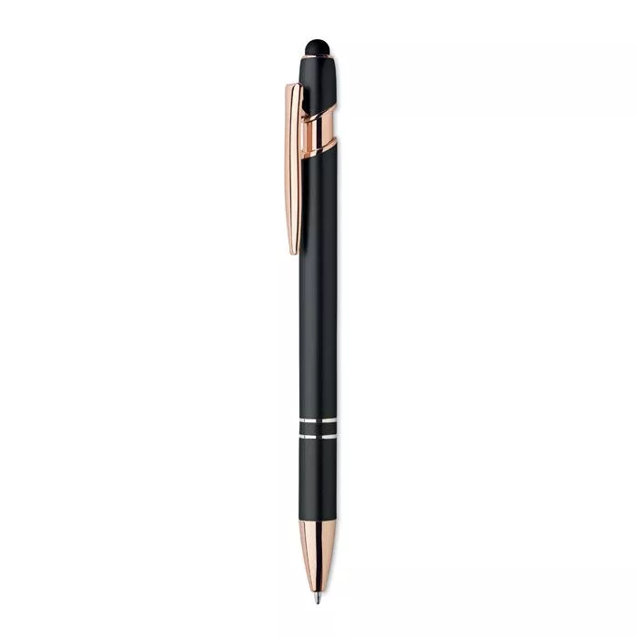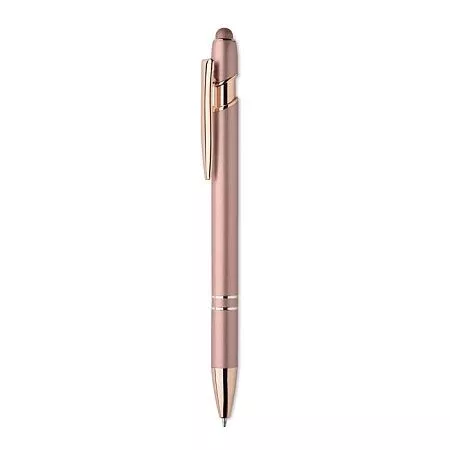 Шариковая ручка со стилусом из переработанного алюминия с деталями из розового золота. Синие чернила.