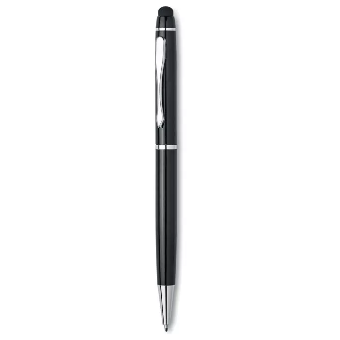 Алюминиевая шариковая ручка с поворотным механизмом и стилусом. Синие чернила. Картонная коробка.