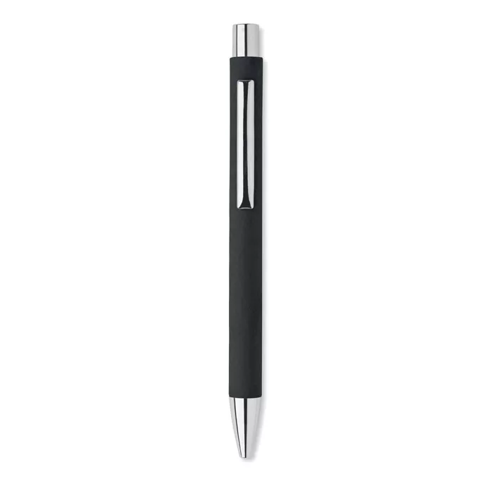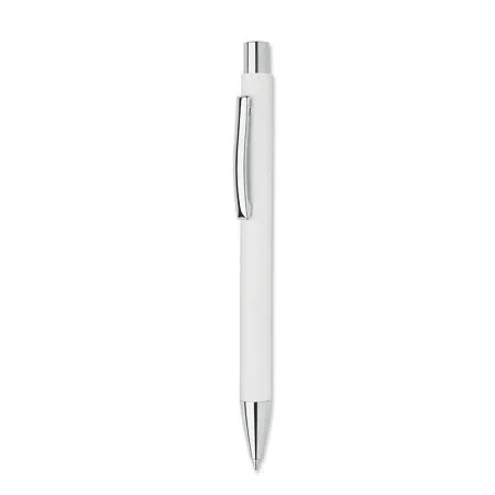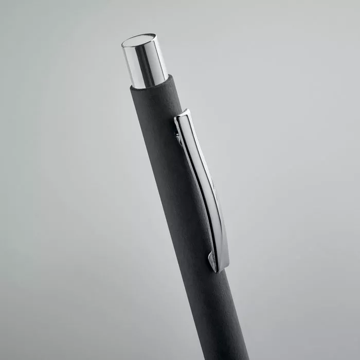 Кнопочная шариковая ручка из переработанной бумаги с металлическим клипом и пластиковой фурнитурой. Синие чернила.