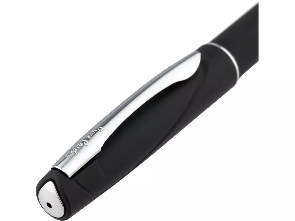 Шариковая ручка Pierre Cardin Actuel • Корпус - ABS-пластик. Цвет - черный; • Отделка - матовое покрытие; • Детали дизайна - сталь с хромированным покрытием; • Упаковка - пластиковая коробочка с пластиковым ложементом с муфтой черного цвета; • Размер упаковки - 158 х 37 х 19 мм, вес 28 гр Комплектация: • Металлический шариковый стержень с логотипом Pierre Cardin на корпусе, с чернилами синего цвета; • Инструкция по использованию ручки. Серия ручек Pierre Cardin ACTUEL – это легкие и удобные шариковые ручки с современным дизайном и широким ассортиментом отделок. Разнообразие форм, цветов, механизмов отражают динамичный ритм жизни, новые возможности и перспективы. Успех во всех начинаниях гарантирован! Главное, не останавливаться!