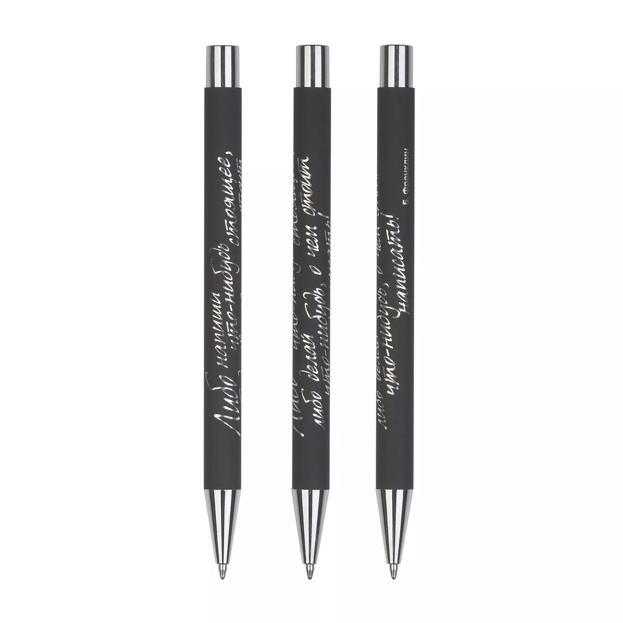 Уникальный дизайн - ручка без клипа. Возможна круговая гравировка (полные 360°) всего корпуса ручки – это позволяет нанести максимальное количество информации. При размещении логотипа отсутствует необходимость позиционировать его относительно клипа – процесс нанесения становится проще и быстрее.