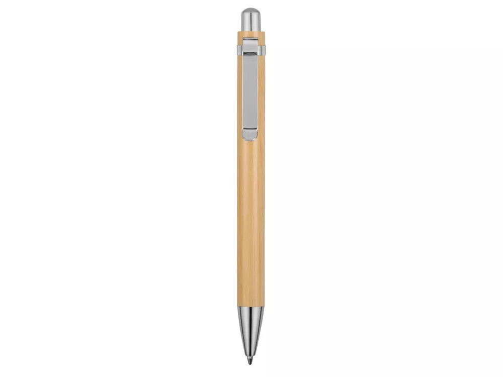 Ручка Bamboo с нажимным механизмом. Корпус ручки изготовлен из экологически чистого материала – бамбука. Наконечник и кнопка пластиковые, клип из хромированного металла.