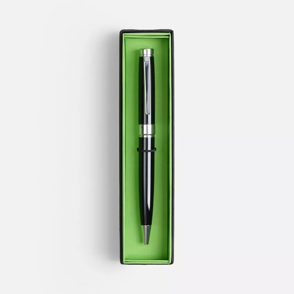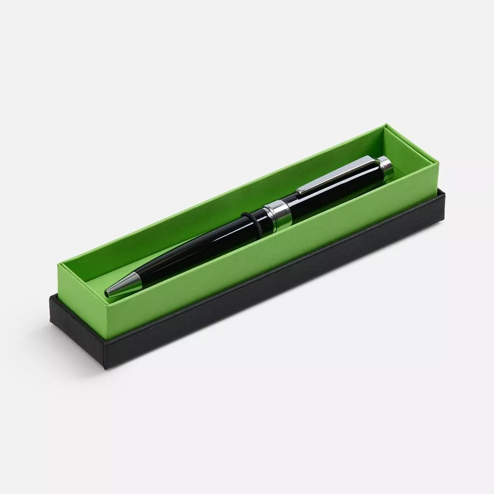 Металлическая ручка Broad Ring в классическом стиле. Футляр из дизайнерской бумаги с контрастным коробом придает подарку законченный и элегантный вид.