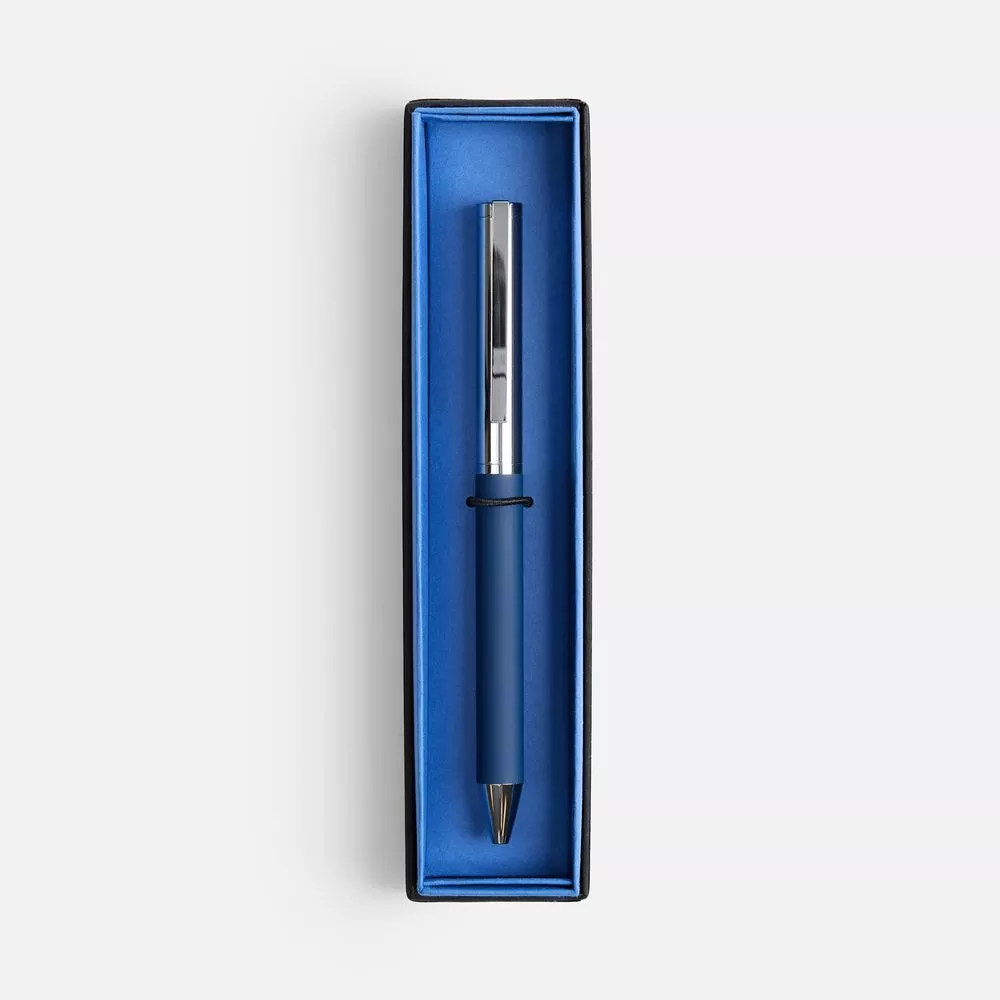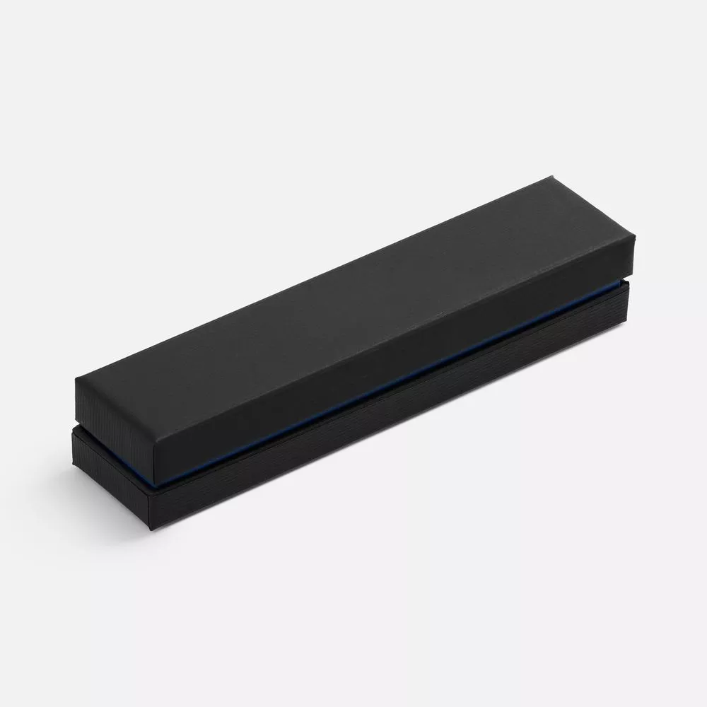 Приятно тяжелая ручка в металлическом корпусе с покрытием софт-тач. Футляр из дизайнерской бумаги с контрастным коробом придает подарку законченный вид.