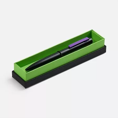 Стильная металлическая ручка Inkolor в матовом черном корпусе с цветным клипом. Футляр из дизайнерской бумаги с контрастным коробом придает подарку законченный и элегантный вид.