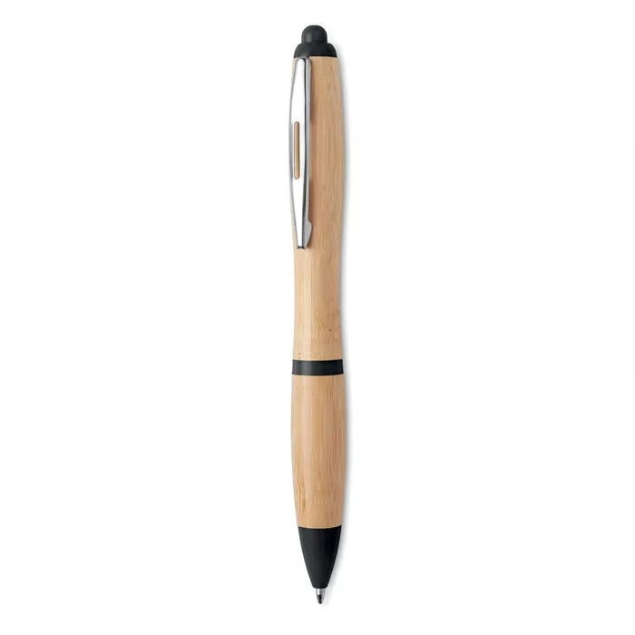 Нажимная шариковая ручка с бамбуковым корпусом и фурнитурой из ABS. Синие чернила.
