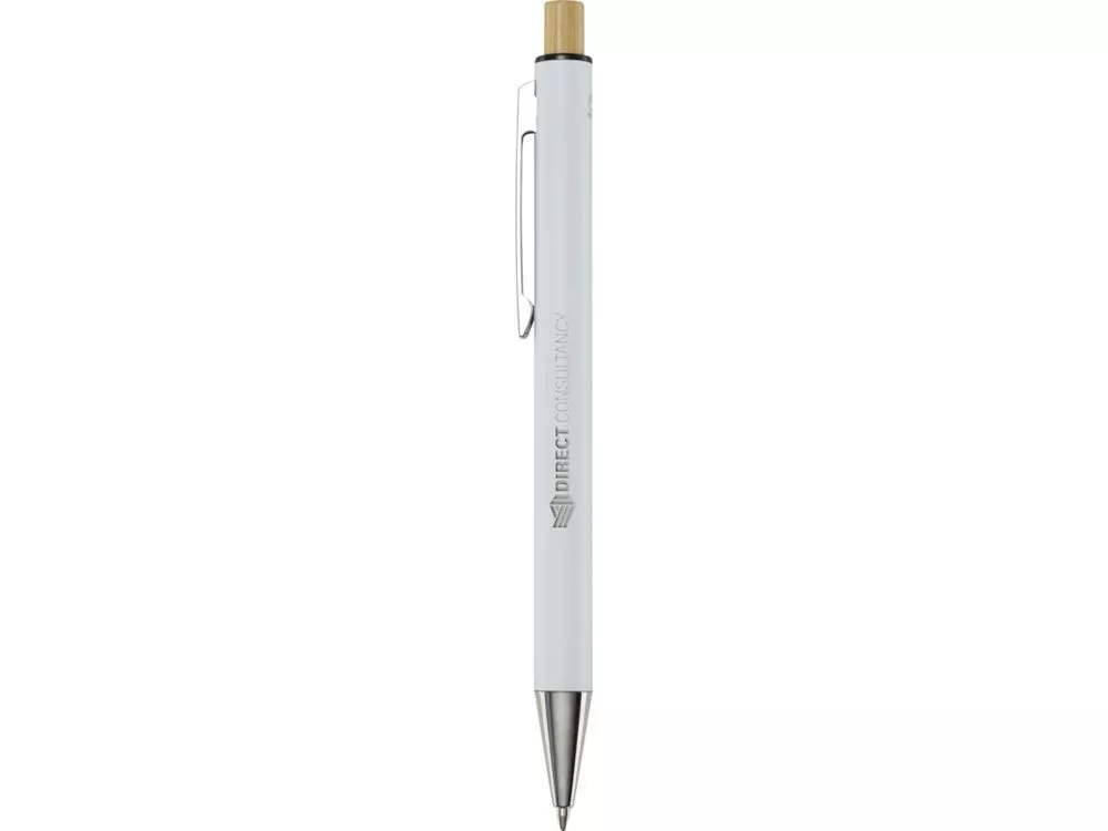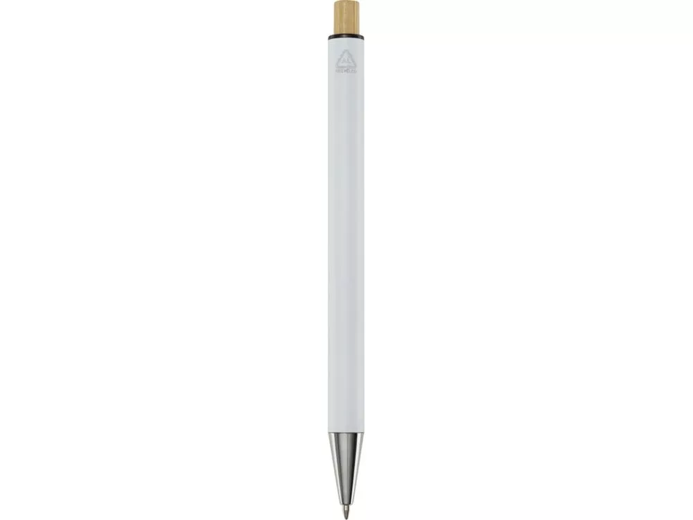 Шариковая ручка Cyrus изготовлена из переработанного алюминия, что требует меньше энергии, чем производство алюминия из сырья. Это также уменьшает количество отходов на свалках и помогает сохранять природные ресурсы для сокращения выбросов парниковых газов. Нажимная кнопка изготовлена из бамбука. Цвет чернил: синий. Длина непрерывной линии: 800 метров. Размер пера: 1,00 мм. Recycled Aluminium.