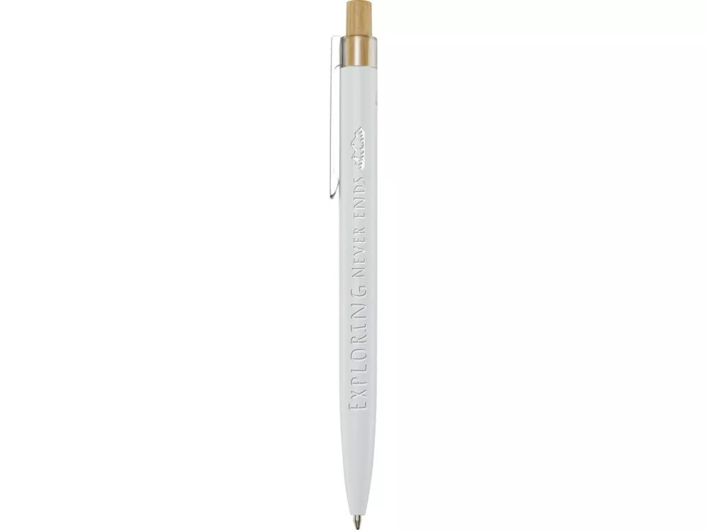 Шариковая ручка Nooshin изготовлена из переработанного алюминия, что требует меньше энергии, чем производство алюминия из сырья. Это также уменьшает количество отходов на свалках и помогает сохранять природные ресурсы для сокращения выбросов парниковых газов. Нажимная кнопка изготовлена из бамбука. Цвет чернил: синий. Длина непрерывной линии: 800 метров. Размер пера: 1,00 мм. Recycled Aluminium.