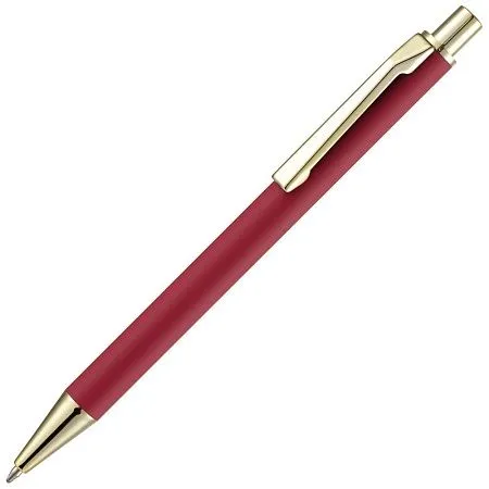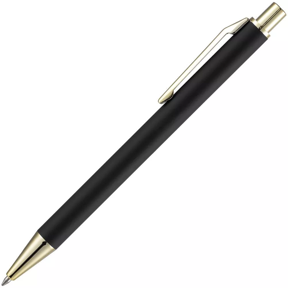 Шариковая ручка с покрытием софт-тач и золотистыми деталями. Клип оригинальной формы.