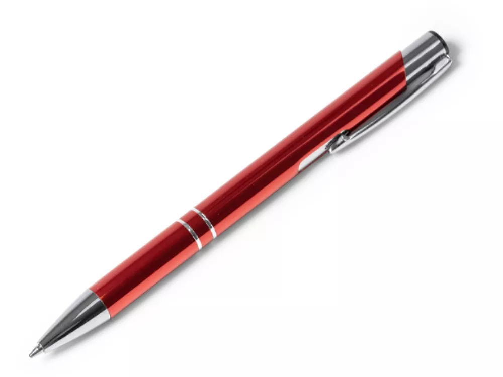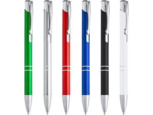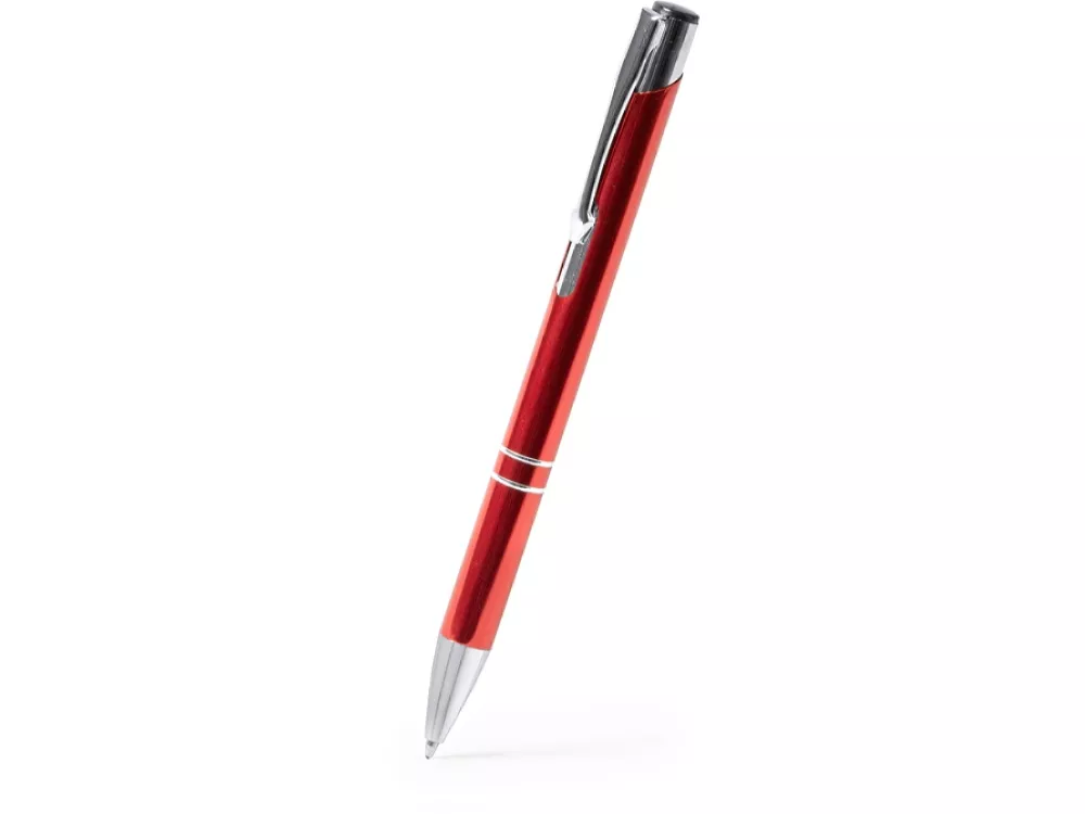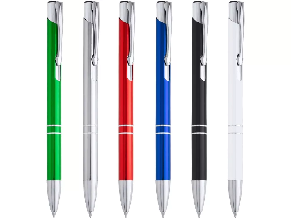 Шариковая ручка с алюминиевым корпусом и кнопкой с анодированным покрытием. Синие чернила
