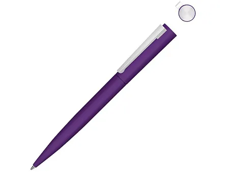 Металлическая шариковая ручка с поворотным механизмом в матовом прорезиненным корпусе soft touch, металлическим клипом на пружине и хромированной матовой вставкой на клипе.