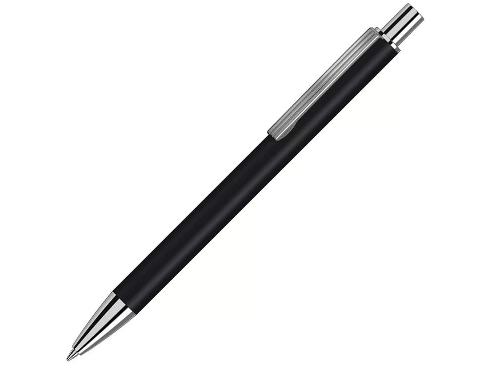 Металлическая автоматическая шариковая ручка с матовой поверхностью, металлическим зажимом, наконечником и кнопкой в сияющем серебре.