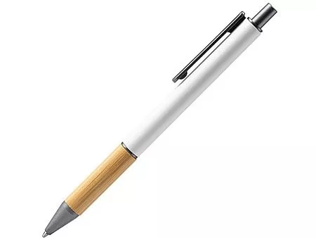 Металлическая шариковая ручка с матовым покрытием, бамбуковой вставкой и деталями темного цвета.