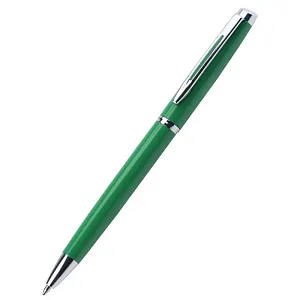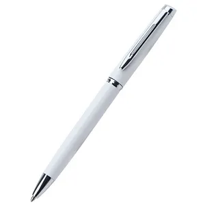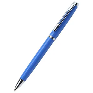 Металлическая шариковая ручка с матовой поверхностью, металлическим клипом, металлическим наконечником и кнопкой с глянцевой серебристой отделкой, прорезиненным ободом для сенсорного регулирования.