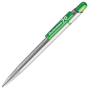 Цвет, близкий к Pantone Silver, 361C, стержень Х-20, чернила Dokumental, синие толщина пишущего узла 1 мм
