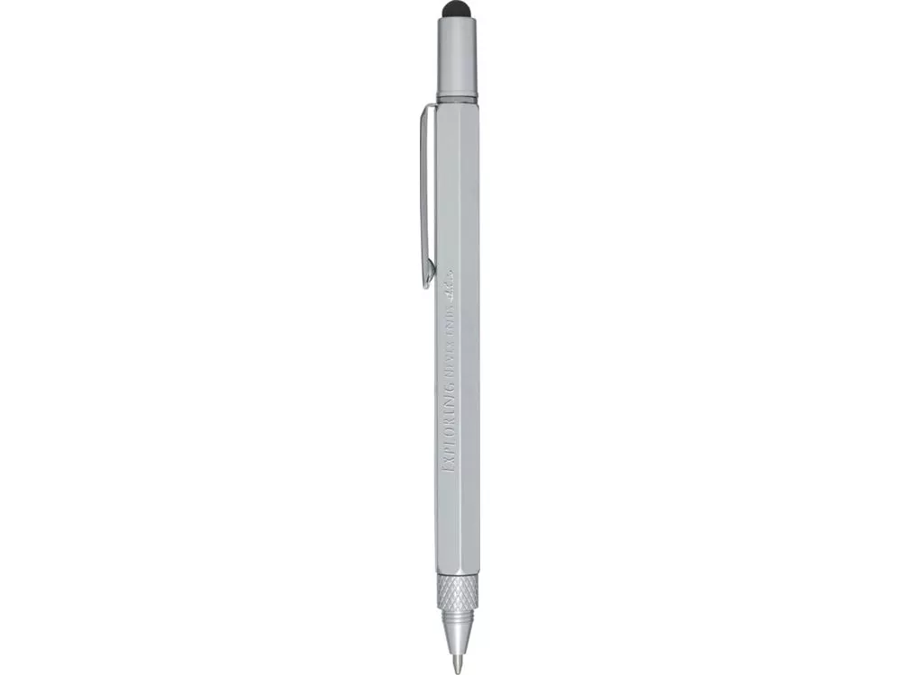 Алюминиевая многофункциональная шариковая ручка Dora частично изготовлена из переработанных материалов и оснащена двусторонней линейкой, уровнем, отверткой, градиентом и черным резиновым стилусом. Корпус изготовлен из переработанного алюминия с цветным напылением. Зажим изготовлен из железа. Отвертка изготовлена из стали. Верхняя часть и наконечник изготовлены из материала RABS. Цвет чернил: черный. Длина непрерывной линии: 400 метров. Размер пера: 1,0 мм. Recycled Aluminium.