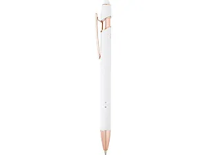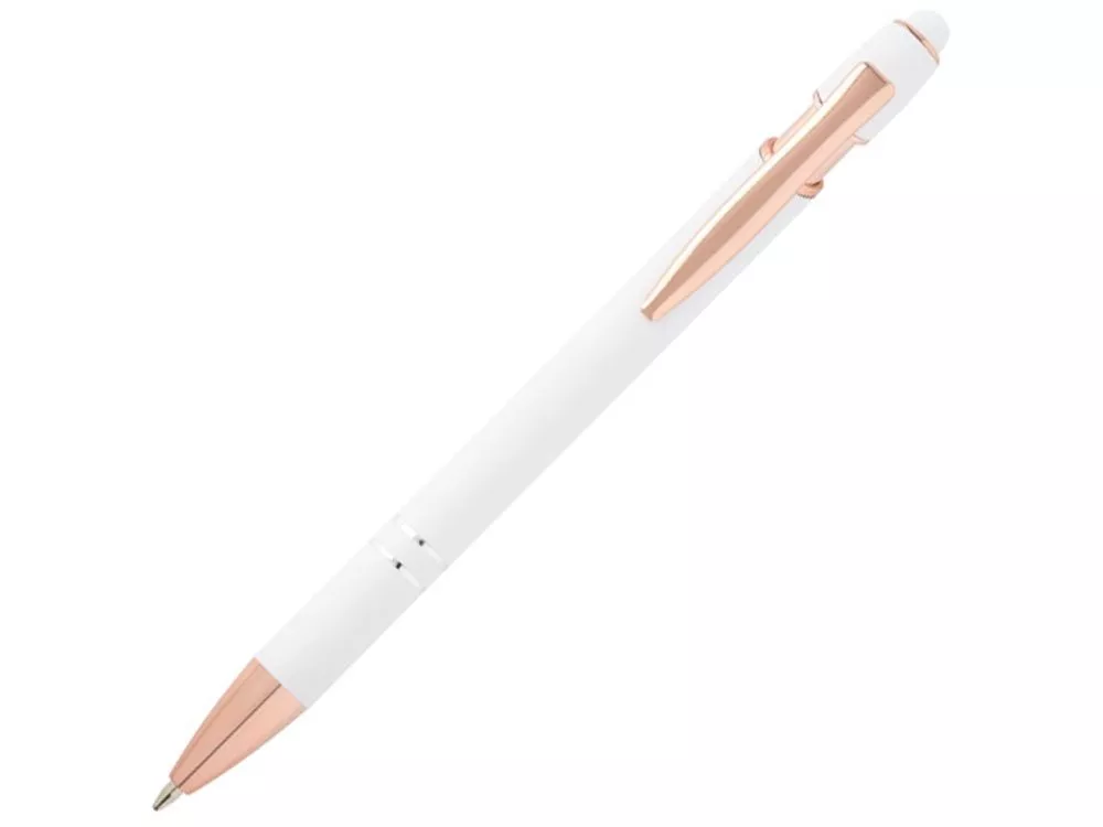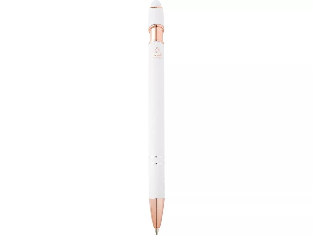 Шариковая ручка Nanna с покрытием из розового золота имеет корпус из переработанного алюминия и сенсорный стилус из силикона. Переработанный алюминий уменьшает количество отходов на свалках и помогает сохранять природные ресурсы для сокращения выбросов парниковых газов. Цвет чернил: синий. Длина непрерывной линии: 800 метров. Размер пера: 1,0 мм. Recycled Aluminium.