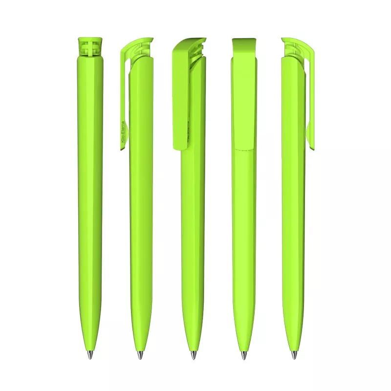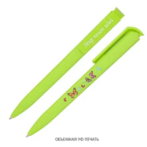 Необычная шестигранная ручка удобно ложится в руку. Корпус с напылением soft touch дополнен глянцевым клипом. Плоские грани корпуса и массивный глянцевый клип превосходно дополнит нанесение тампопечатью и объемной УФ-печатью.
