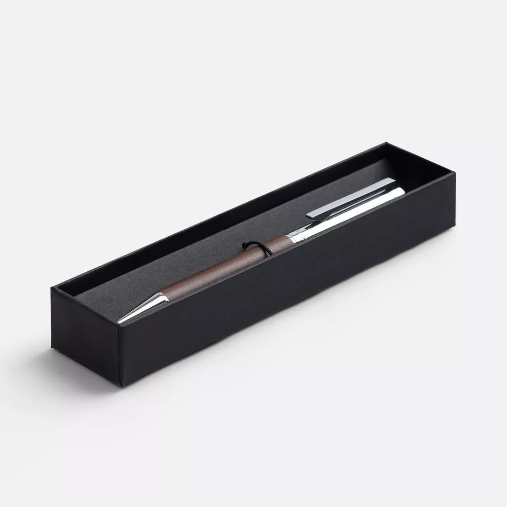 Ручка Waldo — сочетание элегантности и надежности. Корпус ручки выполнен из хромированного металла и орехового дерева, что придает изделию неповторимый теплый оттенок и естественную текстуру.