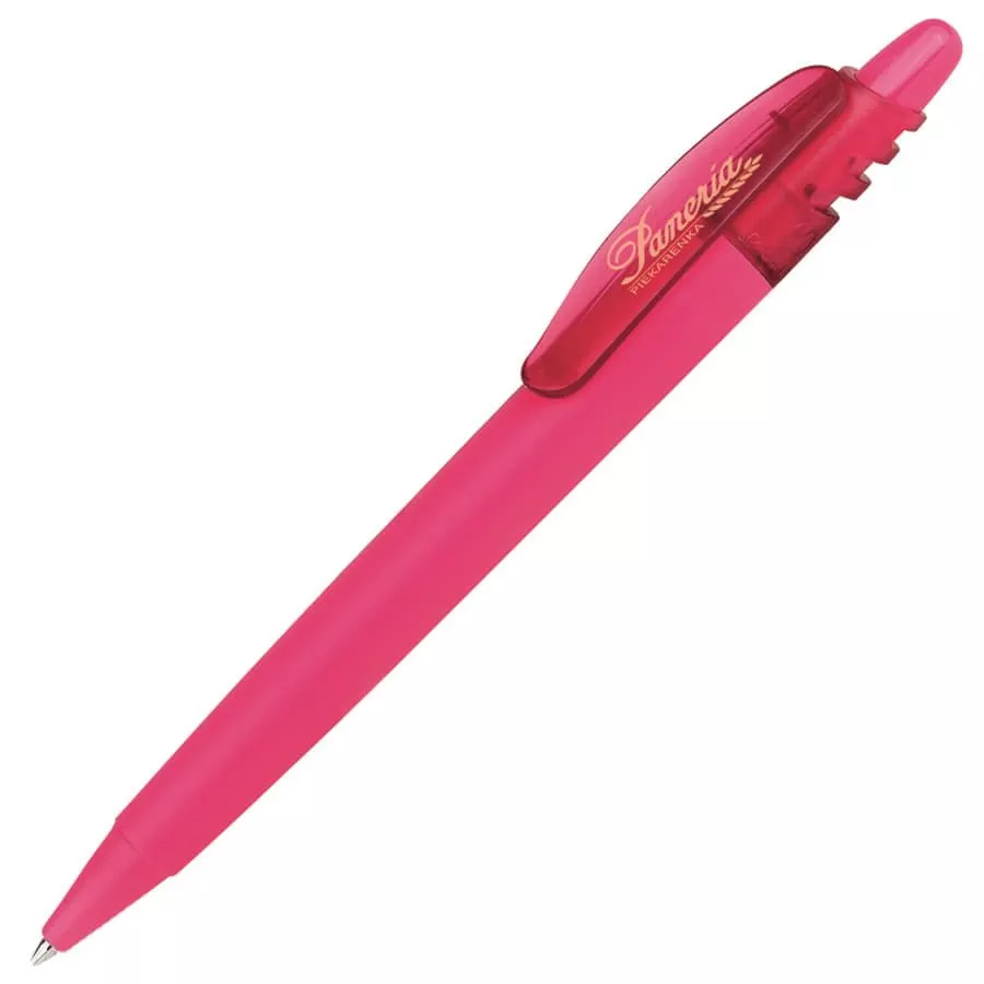 Интересная ручка с оголовком оригинальной формы. Нажимной механизм подачи стержня. Пишущий узел 1,0 мм.