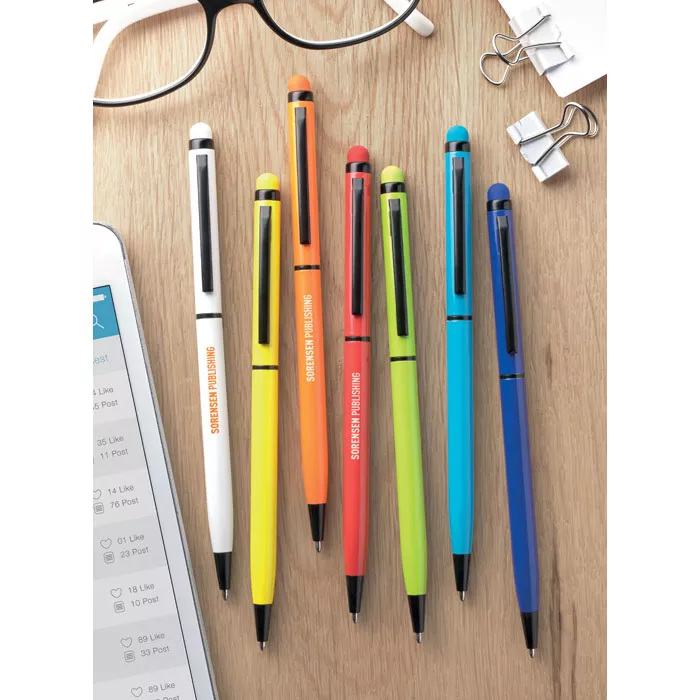 Металлическая шариковая ручка со стилусом. Синие чернила.