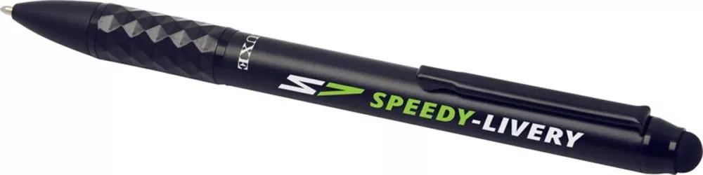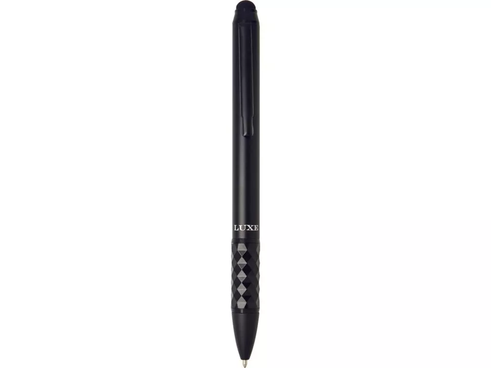 Шариковая ручка со стилусом и эксклюзивным дизайном сочетает в себе шикарный внешний вид и надежность. Корпус эргономичен для использования. Ручка заправлена черными чернилами и упакована в подарочную коробку LUXE. Ее можно дополнить перьевой ручкой или ручкой-роллером и использовать в качестве подарочного набора. Алюминий.