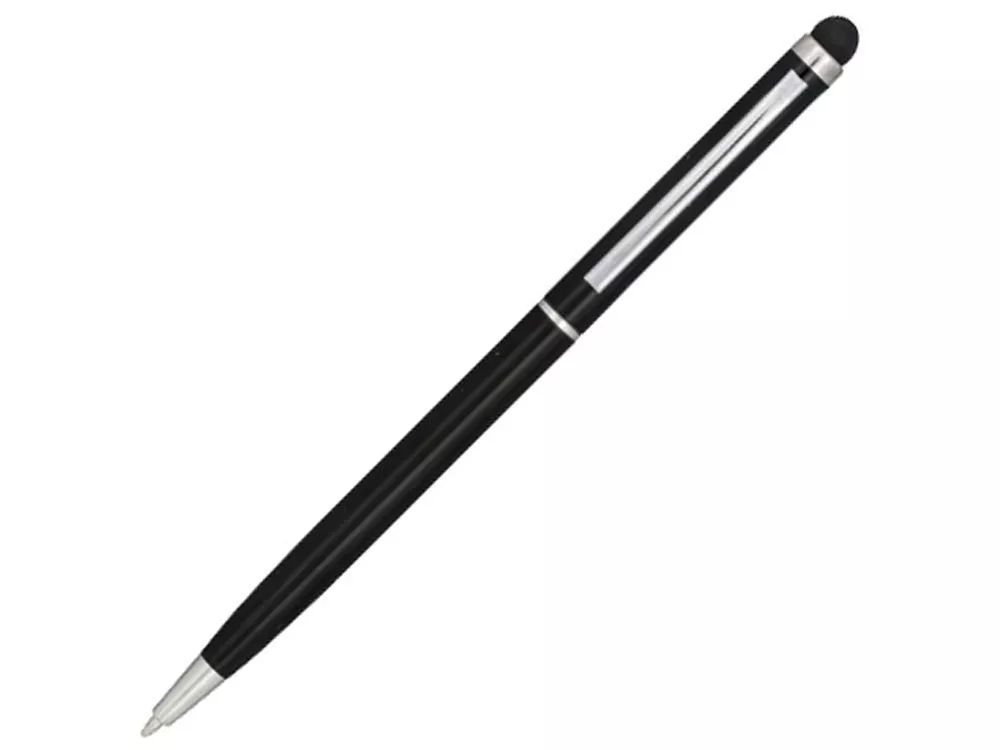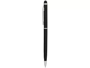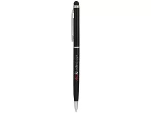 Алюминиевая шариковая ручка Joyce. Тонкая алюминиевая шариковая ручка с поворотным механизмом и стилусом. Алюминиевый корпус с металлическим зажимом и кольцом посередине, остальные элементы из пластика.