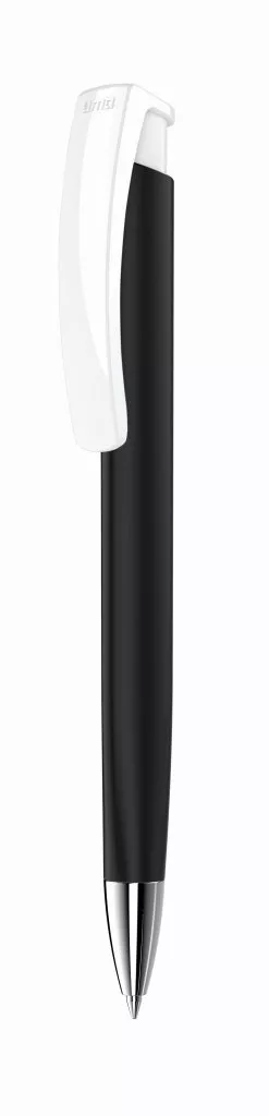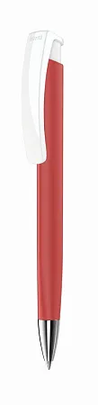 Клип из белого глянцевого пластика, металлический наконечник с глянцевым хромированием.