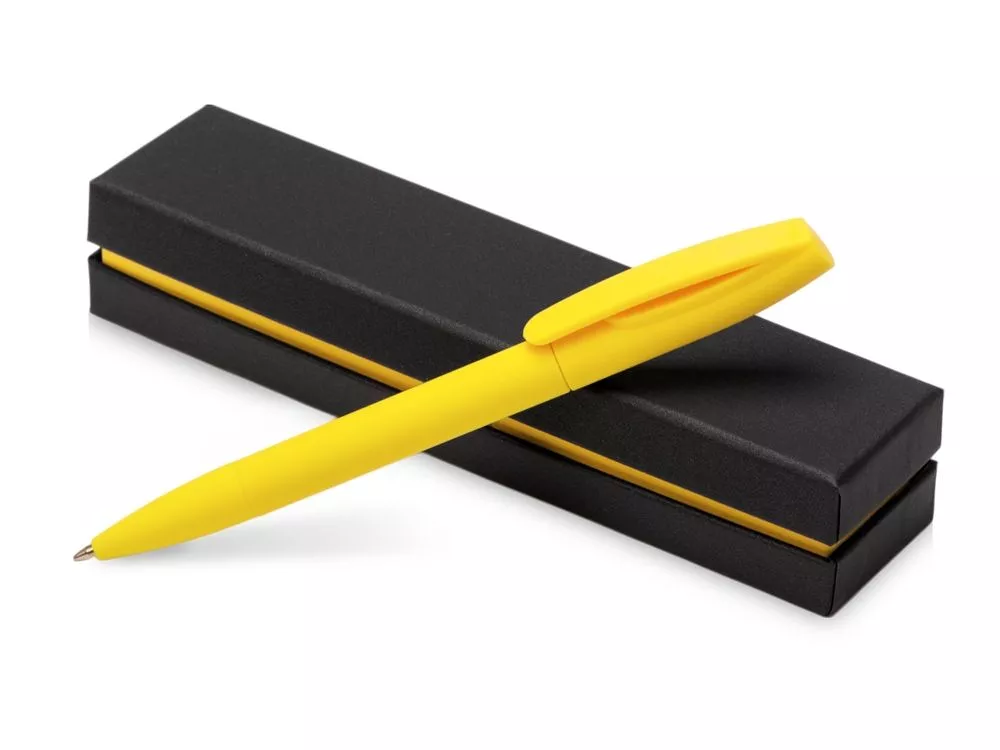 Шариковая ручка с поворотным механизмом и прорезиненным soft-touch корпусом и клипом. Поставляется в красивом черном футляре, внутренний цвет которого идеально сочетается с цветом самой ручки. Тиснение (Фольга) на данный товар осуществляется бесплатно. Оплачивается только настройка оборудования в размере 6200 рублей на весь тираж.