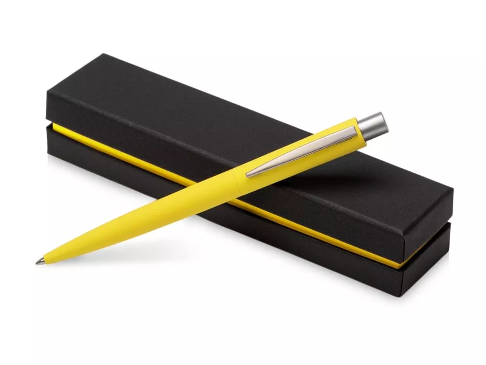 Металлическая шариковая ручка с матовым цветным прорезиненным корпусом. Металлический клип и кнопка в серебристом матовом цвете. Поставляется в красивом черном футляре, внутренний цвет которого идеально сочетается с цветом самой ручки. Европейские объемные стержни в пластиковом корпусе c серебряным наконечником и вольфрамово-карбидным шариком (1,0 мм). Длина письма: примерно 4 000 м. Немецкие чернила соответствует стандарту ISO. Стержни Uma Tech Refill 1.0 гарантируют приятное и мягкое ощущение при письме. Тиснение (Фольга) на данный товар осуществляется бесплатно. Оплачивается только настройка оборудования в размере 6200 рублей на весь тираж.