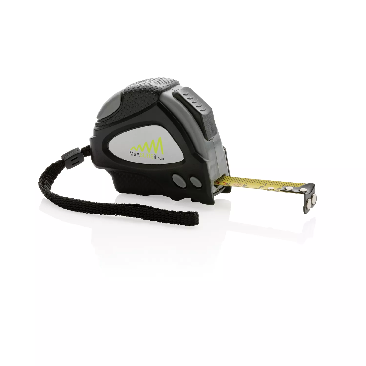 С компактной трехметровой рулеткой Auto Stop заниматься любимым делом или рабочим проектом станет интереснее, ведь даже такой простой инструмент может выглядеть стильно и поднимать настроение. Изготовленная из переработанного ABS-пластика рулетка удобно лежит в руке благодаря прорезиненному корпусу. Для дополнительного комфорта при использовании она оснащена ремешком из полиэстера, кнопкой блокировки, функцией автоматической остановки, а также магнитами на зацепе из углеродистой стали.