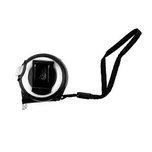 Практичная рулетка. Оснащена удобным ремешком и зажимом на ремень. Размер ленты/рулетки: 3 м х 19 мм / 33 x 53 мм.