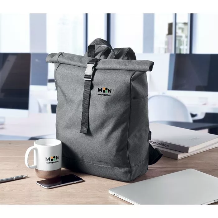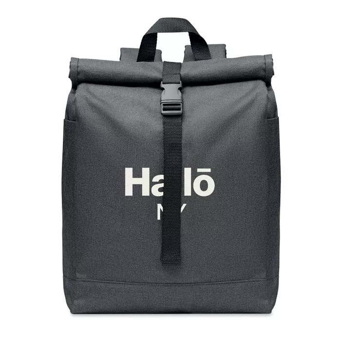 Рюкзак из двухцветного полиэстера 600D RPET с застежкой зажимом на липучке.