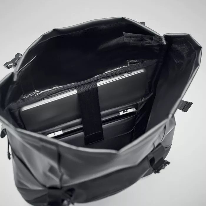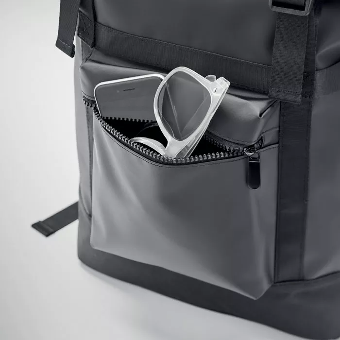 Рюкзак с застежкой Rolltop из брезента 50C с мягкой спинкой, основанием и усиленными плечевыми ремнями. Передние карманы на молнии.