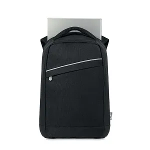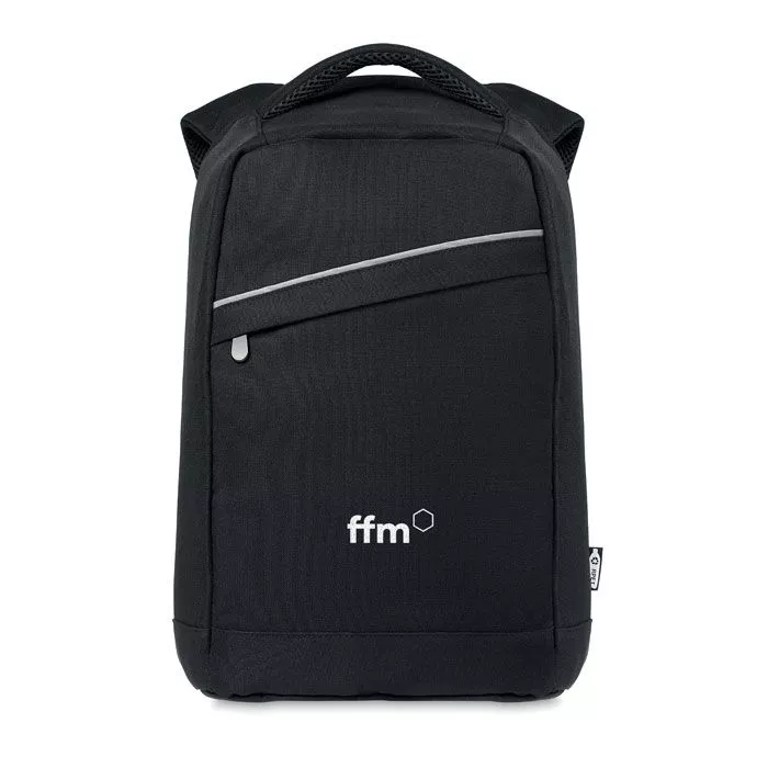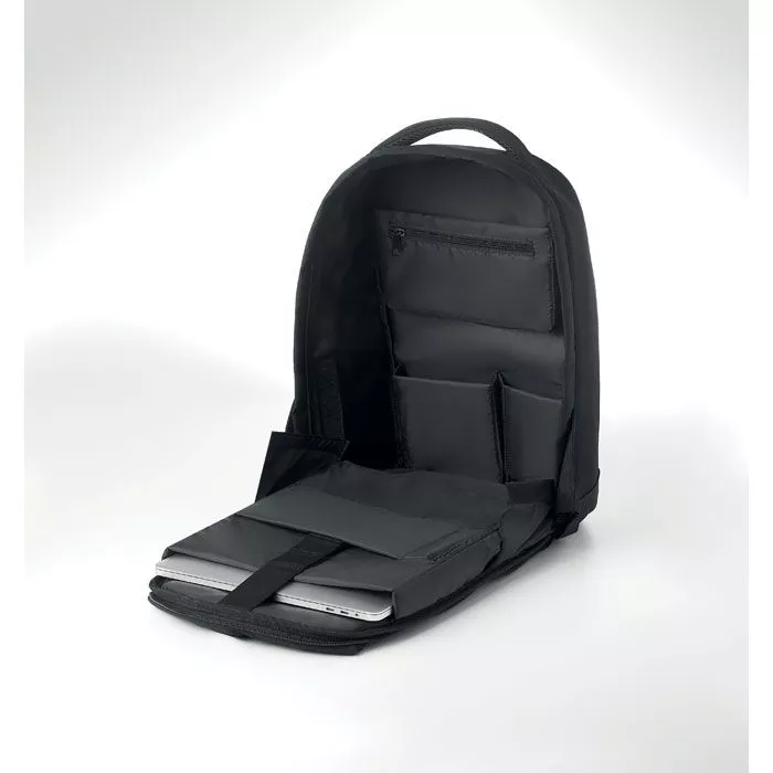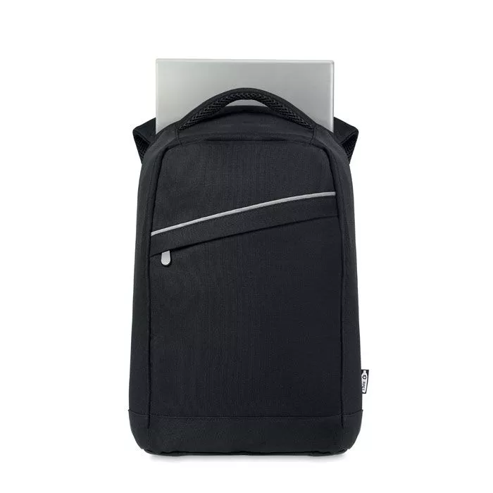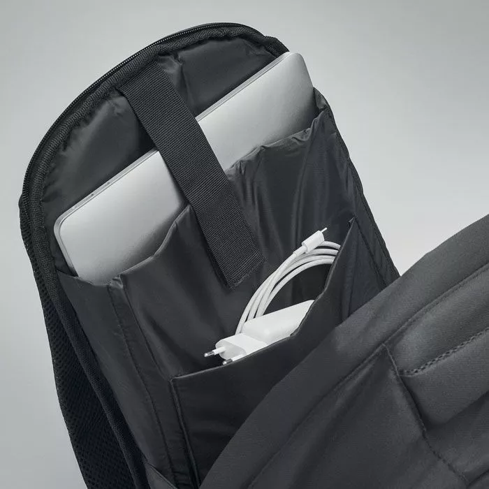 Рюкзак 600D RPET с мягким плечевым ремнем и большим внутренним отделением. Внутри только отделение для ноутбука 13 дюймов. Закрывается на молнию со спины для большей безопасности.