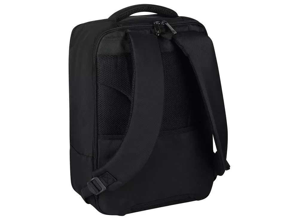 Компактный и функциональный рюкзак с двумя отделениями и наружным карманом на молнии. Ремень для крепления на ручку чемодана. Сетчатая спинка и регулирующиеся по длине лямки.