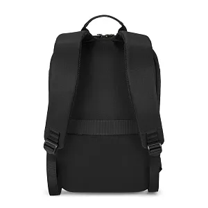 Рюкзак "Balance" для тех кому важна практичность. Основной материал - переработанный пластик (rPET) c пыле-/влагозащитой. Отсутствие карманов с внешней стороны в угоду минимализму и для защиты от краж. Риверсивная молния основного отделения придает целостный законченный вид, при необходимости на пуллеры можно установить багажный кодовый замок. Крепление на ручку чемодана со стороны спинки, быстрая регулировка длины лямок.