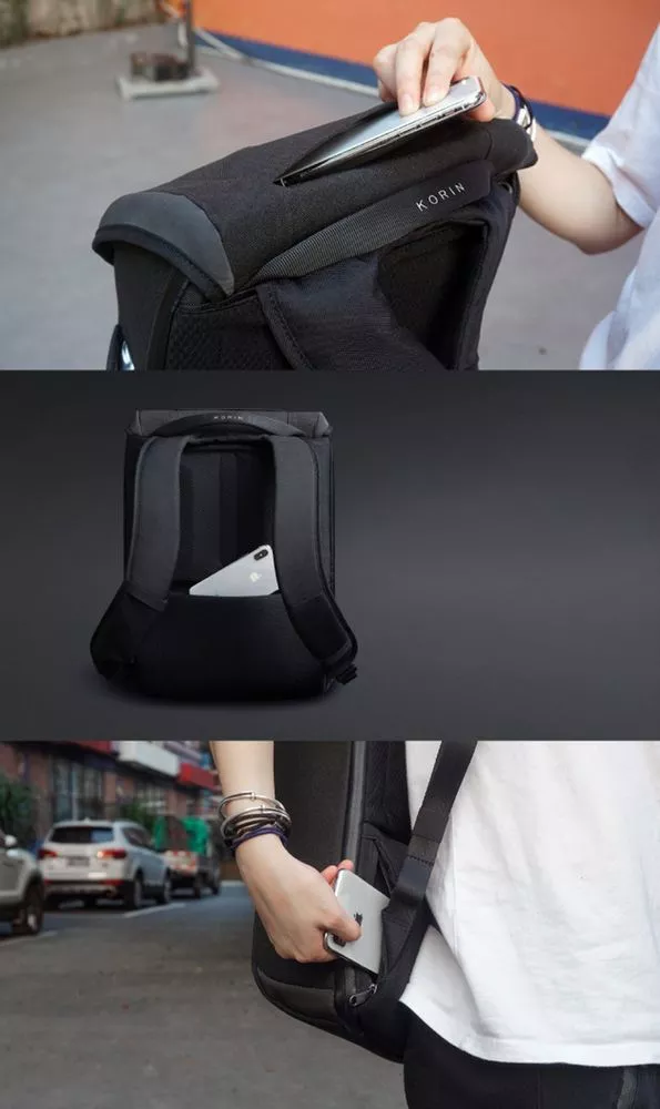 - На спинке рюкзака расположены два внешних потайных кармана с боковым входом на молнии