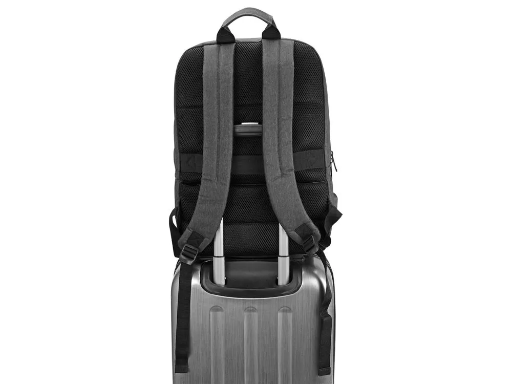Линейка товаров District создана для людей, которые ценят удобство и комфорт в путешествиях. Коллекцию аксессуаров, сумок и рюкзаков отличают минимализм и внимание к деталям. Компактный прочный рюкзак District, Voyager – отличный выбор для тех, кто ценит комфорт и порядок в пути. Аксессуар изготовлен из прочного полиэстера и не требует особого ухода. Продуманная конструкция обеспечивает максимальное удобство пользования. Широкие мягкие лямки не врезаются в плечи и легко регулируются по высоте. Благодаря современному дизайну и нейтральному темно-серому цвету модель станет органичным дополнением к образам в любом стиле. • Специальное защитное отделение для безопасной переноски ноутбука 15. • Встроенный USB-порт для зарядки гаджетов прямо на ходу, не снимая рюкзака. • Ремень на задней спинке рюкзака для надежной фиксации аксессуара на телескопической ручке чемодана или сумки на колесиках. • Вместительное отделение, внутренние и наружные карманы для раздельного хранения вещей. • Внутренний объем 17 л. Термотрансфер (1 цвет (цветные изделия)) на данный товар осуществляется бесплатно. Оплачивается только настройка оборудования в размере 9200 рублей на весь тираж.