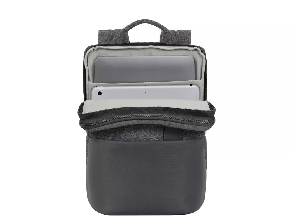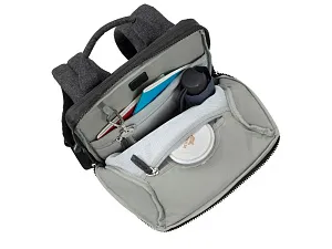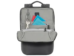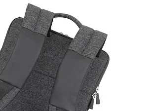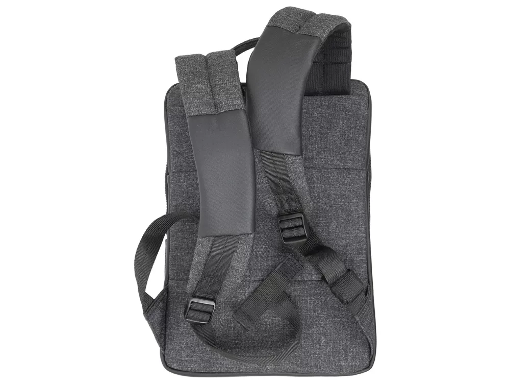 Рюкзак для для MacBook Pro 13 и Ultrabook 13.3. Описание: • Рюкзак для деловых поездок. • Изготовлен из плотной искусственной кожи и полиэстера для защиты ноутбука от случайных ударов и царапин, а также от пыли и влаги. • Отделение для ноутбука защищено водостойкой молнией, имеет мягкие стенки, карман для планшета до 10.1. Дно имеет дополнительную мягкую вкладку для защиты гаджета. • Передний карман на молнии для хранения аксессуаров, зарядного устройства, авторучек, смартфона. • Внутреннее пространство разделено на отделение для документов, два кармана на молнии и карман для воды или зонта. • Удобная мягкая ручка для переноски и наплечные ремни со смягчающими подкладками помогут чувствовать себя комфортно в самом долгом путешествии. • Специальная система крепления ремешков на липучке закрепляет их и создает дополнительное удобство. Размер отделения для ноутбука: 240 x 340 x 20 мм.