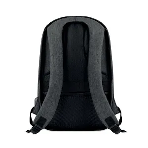 Рюкзак из полиэстера 600D двухцветный с мягким плечевым ремнем и основным внутренним отделением. Включает в себя один внутренний отсек для ноутбука с диагональю 13 дюймов и кабель для зарядки USB. Основной отсек на молнии на задней стороне для лучшей защиты.
