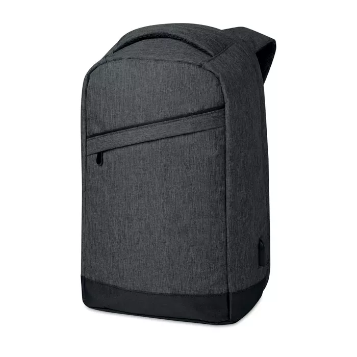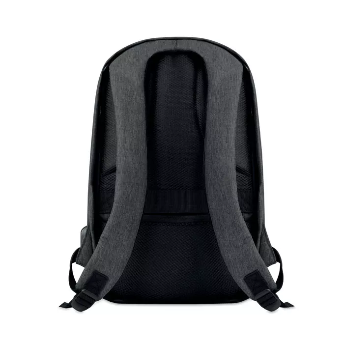 Рюкзак из полиэстера 600D двухцветный с мягким плечевым ремнем и основным внутренним отделением. Включает в себя один внутренний отсек для ноутбука с диагональю 13 дюймов и кабель для зарядки USB. Основной отсек на молнии на задней стороне для лучшей защиты.